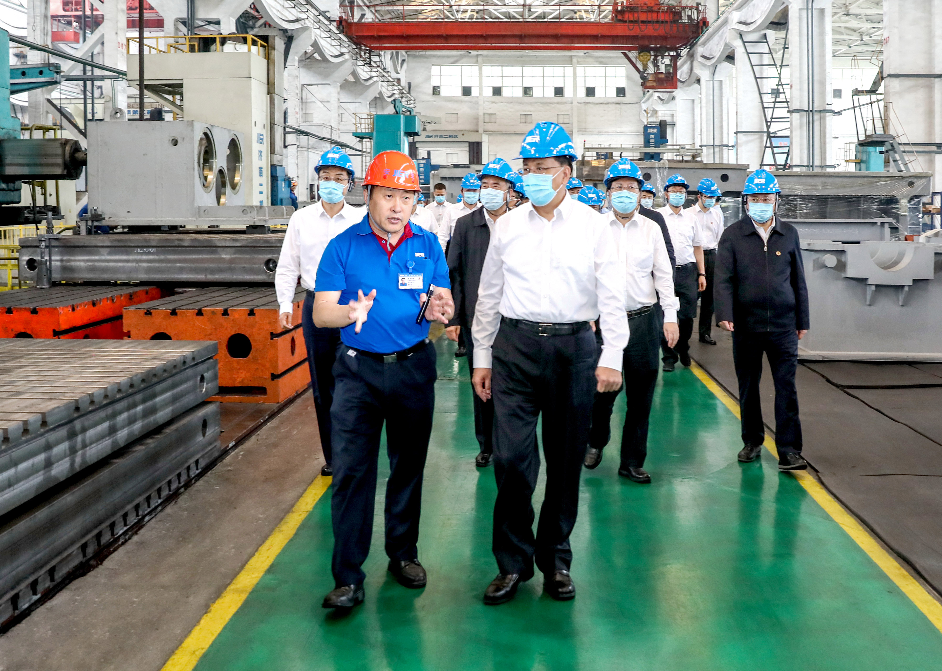 5月31日上午,中央政治局委員、重慶市委書記袁家軍,市委副書記、市長胡衡華率領(lǐng)重慶市黨政代表團(tuán)來集團(tuán)公司調(diào)研。山東省委書記、省人大常委會(huì)主任林武,省委常委、濟(jì)南市委書記劉強(qiáng),副省長周立偉等省市領(lǐng)導(dǎo)陪同?;笔a區(qū)委書記孫常建以及濟(jì)南二機(jī)床集團(tuán)領(lǐng)導(dǎo)張世順、高守源、任立偉接待了代表團(tuán),并陪同參觀產(chǎn)品展廳及重型壓力機(jī)裝配車間。